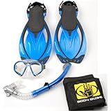 Body Glove Scuba Diving Snorkeling Purge Mask Flippers Fins Semi-Dry Snorkel Set, Blue, Medium/X-Large (Misc.)