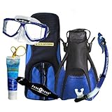U.S. Divers Sideview Mask, Paradise Dry Snorkel, Travel Trek Fins, Strap & Coast Bag Package (Misc.)