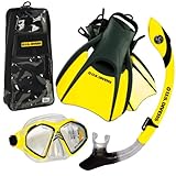 US Divers Snorkeling Scuba Dive Mask Fins Dry Snorkel Gear Set, Yellow, Medium/Large (Misc.)