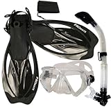 PROMATE Snorkeling Matrix Mask Dry Snorkel Fins Mesh Bag Set, ClrWBk, S/M (Misc.)