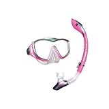 This women's specific snorkel set features a low-profile, single lens silicone mask with an easy adjust pro glide buckle. The US Divers Diva LX Island Dry Snorkel Combo is designed to fit smaller profile faces. The pivot dry snorkel stays water-free even when submerged. Low profile single lens design with feminine features suits a womens face with comfort. Hypoallergenic silicone face skirt provides ultimate comfort and the pinch and pull Pro-Glide buckles for a custom fit. The patented Pivot Dry snorkel has a top that closes to seal out water when you go under water. Wearing The US Divers Diva LX Island Dry Snorkel Combo offers you a contoured barrel that is ergonomically shaped for correct positioning and comfort. Features: Full flex section provides custom fit, One way purge valve keeps snorkel clear, Dual-composite fin blade for excellent snap, power and styling, Compact length is great as a travel snorkeling fin or other water sports activities, Super-soft and comfortable foot pocket with adjustable strap to fine tune fit. Model Year: 2012, Product ID: 253318 Read more